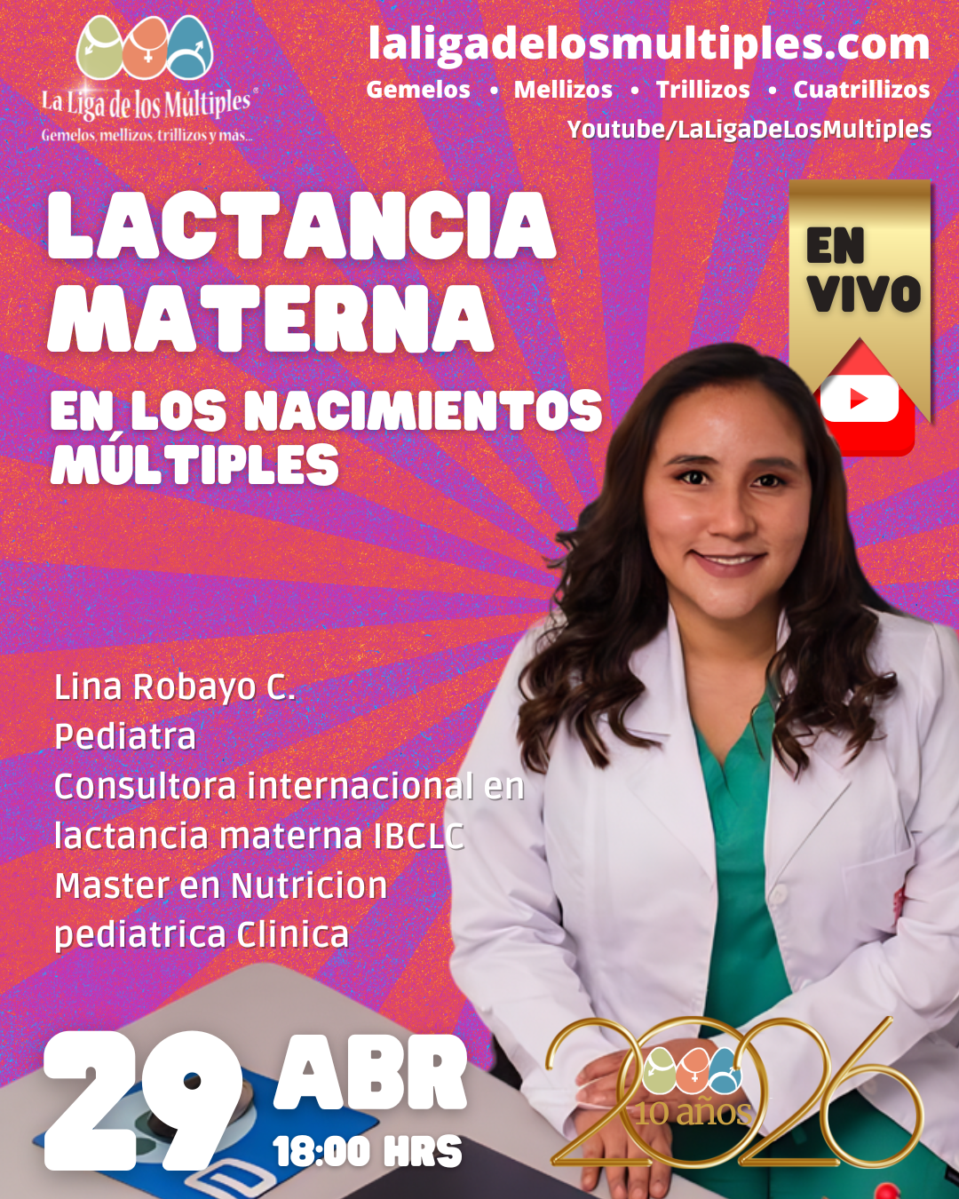 Amamantar a gemelos, mellizos o más, es un proceso que comienza mucho antes del parto. En este Live de La Liga de los Múltiples, la Dra. Lina Robayo C. nos enseña que la educación prenatal es el primer paso para una lactancia exitosa y consciente. Contenido de la sesión: Preparación prenatal: Qué saber y qué organizar antes de que nazcan los bebés. Estrategias prácticas para la lactancia simultánea o alterna. Fisiología de la producción de leche en casos de múltiples. Cómo gestionar el tiempo y el descanso de la madre. El papel vital de la red de apoyo en el hogar.