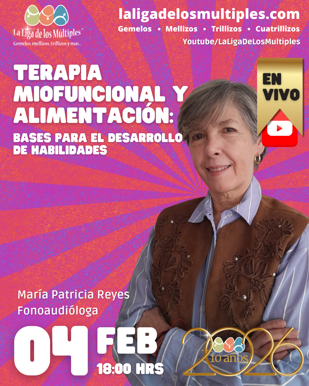 María Patricia Reyes Ruiz Fonoaudióloga – Universidad del Rosario Especialista en Terapia Miofuncional y Disfagia – Universidad Nacional de Colombia Certificación Internacional Técnica NM-F Neuromuscular-Funcional (Método Chiavaro) – A.L.D.E / CEMEC, Buenos Aires Entrenamiento en manejo de AOS y ronquido primario – Nic-S, São Pablo Durante esta conversación abordamos preguntas frecuentes de las familias: Aspectos clave para lograr una buena alimentación Lactancia materna en embarazos múltiples Cómo se desarrollan las habilidades para comer Señales de alerta y detección temprana Principios miofuncionales en prematuros o bajo peso al nacer Terapia virtual y su impacto Pasos importantes a tener en cuenta durante las comidas Este contenido está pensado para padres, cuidadores y profesionales que buscan comprender mejor los procesos de alimentación y acompañar el desarrollo infantil desde la información y la calma.